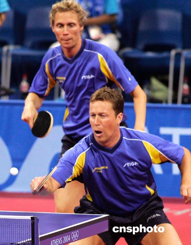 中新社雅典八月十八日電 在近期的一系列比賽中戰(zhàn)績(jī)最佳的中國(guó)乒乓球男雙組合王皓/孔令輝今天出人意料地在爭(zhēng)奪奧運(yùn)會(huì)八強(qiáng)席位的比賽中敗在了英雄遲暮的瑞典老將瓦爾德內(nèi)爾、佩爾森拍下,爆出一大冷門。