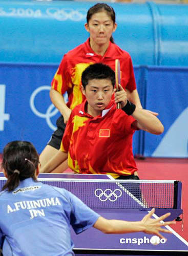 當(dāng)?shù)貢r(shí)間八月十八日,在雅典奧運(yùn)會(huì)乒乓球女雙1/4決賽中,中國選手郭躍、牛劍鋒以4:2擊敗日本選手福原愛、梅村禮,晉級四強(qiáng)。中新社記者:張煒