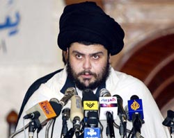 伊拉克國(guó)防部長(zhǎng)哈基姆18日聲稱,薩德?tīng)栴I(lǐng)導(dǎo)的“邁赫迪軍”如不投降,將在未來(lái)戰(zhàn)事中受到“教訓(xùn)”。有報(bào)道稱,由于美軍不敢輕易破壞圣地阿里清真寺,那里藏身的薩德?tīng)柤捌湮溲b才戰(zhàn)斗至今。