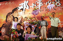 為紀(jì)念一代偉人鄧小平同志誕辰一百周年,由中影集團(tuán)與上海電影集團(tuán)公司聯(lián)合發(fā)行的影片《鄧小平·1928》,于八月十九日與北京觀眾見(jiàn)面并舉行首映式。圖為該片導(dǎo)演及主要演員在首映式上與觀眾見(jiàn)面。中新社記者:張勤