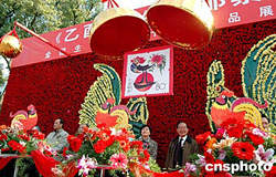 以雞為主題的二00五年《乙酉年》特種郵票一月五日在中國(guó)生肖集郵研究會(huì)所在地蘇州首發(fā)!兑矣夏辍诽胤N郵票一套一枚,方形票,四邊正中各有一個(gè)六角形大齒孔,面值八十分。作者:蔣振江
