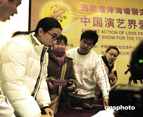來(lái)自四面八方的社會(huì)各界人士六日在北京參加“中國(guó)演藝界愛(ài)心大行動(dòng)為印度洋海嘯賑災(zāi)義演”。