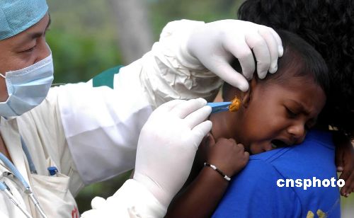 2004年12月26日的印度洋海嘯給斯里蘭卡、印度尼西亞等南亞、東南亞國家造成巨大的生命和財(cái)產(chǎn)損失。災(zāi)難過后,中國派出多只醫(yī)療隊(duì)火速趕往災(zāi)區(qū)積極參與救援,給當(dāng)?shù)厝嗣褚詿o私的援助。作者:Ic/cnsphoto