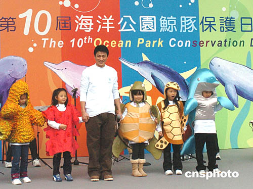 香港鯨豚保護(hù)基金大使劉德華與一眾小小“海洋生物”8日亮相于香港第十屆海洋公園鯨豚保護(hù)日活動(dòng)現(xiàn)場。