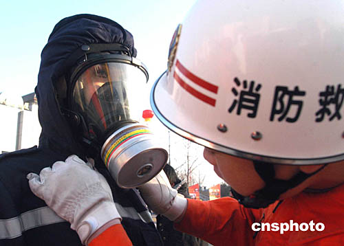 1月10日是“110”報(bào)警服務(wù)臺(tái)建臺(tái)19周年紀(jì)念日,110報(bào)警服務(wù)臺(tái)在北京西單文化廣場舉辦“110”主題宣傳活動(dòng)。圖為消防隊(duì)員在向市民展示防化防核服。中新社記者:張宇