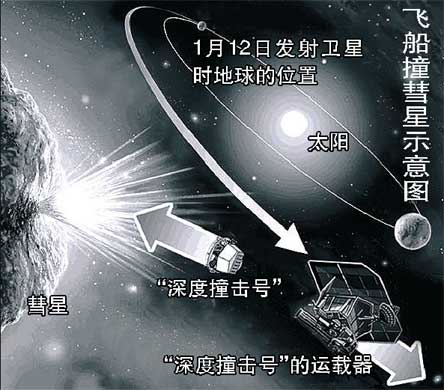 中新網(wǎng)1月12日電 國(guó)際在線消息:美國(guó)國(guó)家航空航天局(NASA)近日傳出消息,一艘名為“深度撞擊號(hào)”的飛船將于1月12日升空;6個(gè)月后,其搭載的撞擊器將直接沖向“坦普爾1號(hào)”彗星的彗核,完成人類首度撞擊彗星。此次撞擊將首次獲取大量彗核碎片,為人類探究太陽系起源提供新的線索,也為地球遭遇小天體撞擊時(shí)“轉(zhuǎn)守為攻”積累數(shù)據(jù)。