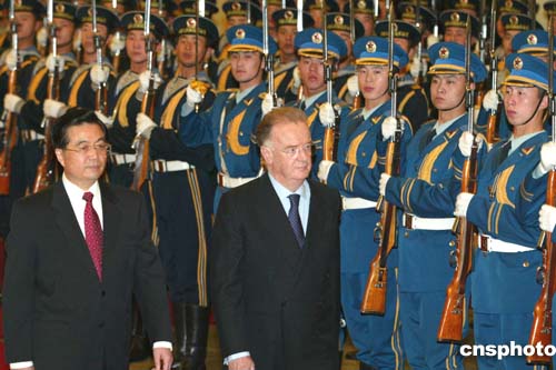 胡錦濤舉行儀式歡迎葡萄牙共和國(guó)總統(tǒng)若熱·桑帕約訪華。作者:滿(mǎn)會(huì)喬
