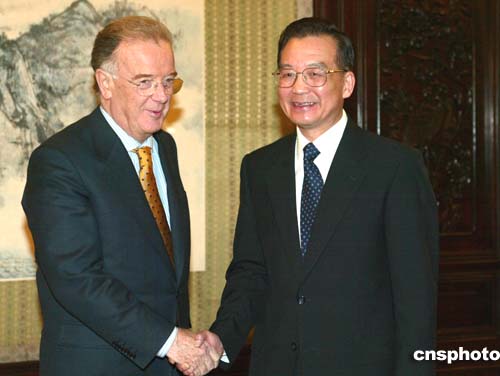 溫家寶說,中國政府高度重視發(fā)展雙邊經貿關系,愿進一步擴大和提高中葡經貿合作水平,雙方還可充分發(fā)揮各自優(yōu)勢,共同開拓國際市場。