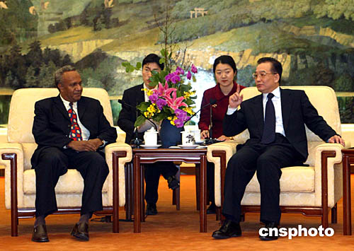 中國國務(wù)院總理溫家寶一月十八日在北京會見瓦努阿圖副總理兼外長薩托·基爾曼。中新社記者:廖文靜