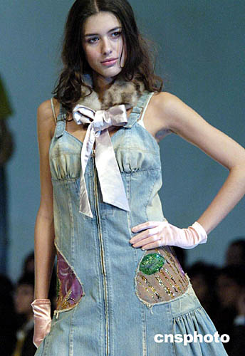 1月19日,香港會(huì)展中心舉行的“香港時(shí)裝節(jié)秋冬系列2005”上,模特在T型舞臺(tái)演繹“獨(dú)家時(shí)裝表演”專(zhuān)場(chǎng)的設(shè)計(jì)師最新服飾系列。作者:洪少葵