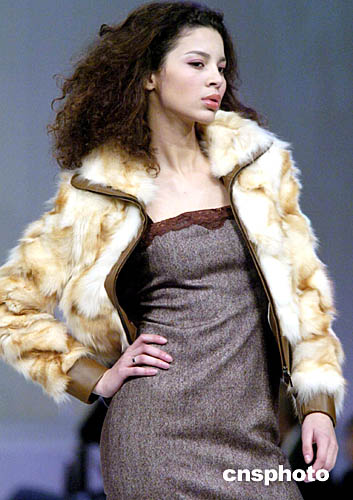 1月19日,香港會展中心舉行的“香港時裝節(jié)秋冬系列2005”上,模特展示“獨(dú)家時裝表演”專場皮草秋冬系列。作者: 洪少葵