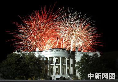 19日晚,白宮燃放煙火為布什就職慶典活動(dòng)助興。