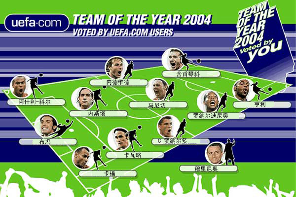 中新網(wǎng)1月20日電 經(jīng)過(guò)超過(guò)120萬(wàn)的網(wǎng)友進(jìn)行投票選擇,歐洲足聯(lián)本周三在自己的官方網(wǎng)站上公布了2004年的歐洲足壇最佳陣容。在這個(gè)名單中,新科歐洲足球先生舍甫琴科領(lǐng)銜鋒線(xiàn),與他搭檔的,是阿森納前鋒亨利,后者也成為唯一一名連續(xù)4年入選歐洲足壇最佳陣容的球員。