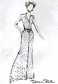 不過從白宮發(fā)布的設(shè)計圖來看,第一夫人此次的服裝似乎沒有什么新意可言,特別是在就職大典上的禮服更是沒有多少懸念,明顯的傳統(tǒng)保守選擇。白天是一件白色的凱斯咪套裝和搭配的套裙。晚上的宴會上,勞拉則會著一身銀藍(lán)色的薄紗曳地晚禮服,上墜有奧地利水晶,外配冰藍(lán)色外套。銀藍(lán)色的晚禮服是勞拉在四天慶典上的主打服飾。
