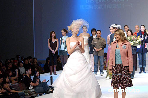 1月20日,在“香港時裝節(jié)秋冬系列”及“香港國際時尚薈萃”上,舉辦一場國際時裝設(shè)計(jì)師表演,圖為澳洲時裝設(shè)計(jì)師Roslyn Lakelin與模特登臺謝幕。作者:洪少葵
