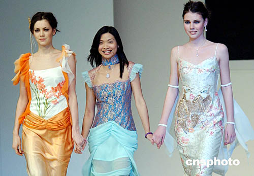 1月21日,在“香港時(shí)裝節(jié)秋冬系列”及“香港國際時(shí)尚薈萃”上,舉辦第二場“國際時(shí)裝設(shè)計(jì)師表演”,展示來自香港、澳洲、印度尼西亞10位才華橫溢的時(shí)裝設(shè)計(jì)師作品。圖為香港時(shí)裝設(shè)計(jì)師Simone Ng與模特登臺謝幕。作者:洪少葵