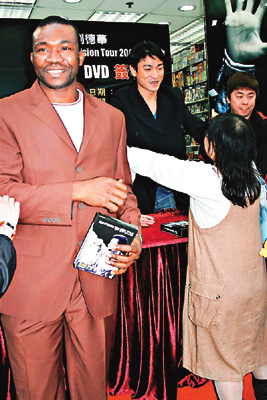 由于是派籌形式,故排頭位的男歌迷不過是中午十二時半才到場,不過排隊的歌迷非但老中青三代也有,還有一名高頭大馬的黑人與女友,期間更不停舉起“華仔”的DVD讓記者拍照,認真熱情。輪到黑人索簽名之際,“華仔”特別與之握手和交談,又與其女友擁抱以示感謝!叭A仔”表示對方其實不懂廣東話,不過聽他的歌后覺得很感動,并向朋友詢問有關(guān)歌詞內(nèi)容及意思,“華仔”亦向?qū)Ψ奖硎咀约涸趭蕵啡σ押芏嗄炅。該位黑人又對記者說,他來港不過五個月時間,但在女友Vita感染下,二人都很喜歡“華仔”的歌,覺得很有共鳴。