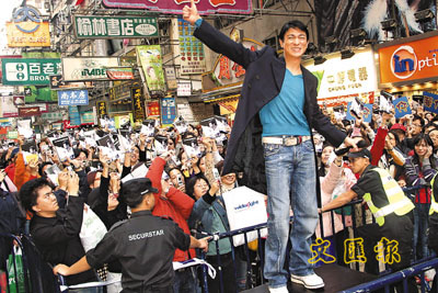 現(xiàn)場所見,圍欄橫跨了大半條街,全場秩序良好,就連旁邊的被鐵欄阻隔的兩間商店也沒有投訴。當“華仔”站在人群中的桌上與歌迷拍合照時,向歌迷預祝新年快樂之余,也不忘呼吁歌迷要乖和保持秩序,歌迷除了乖乖聽話沒有擁前外,還高舉偶像的DVD,場面熱鬧又哄動。