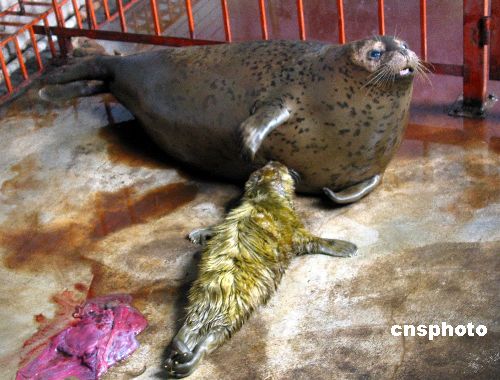 2005年1月24日早晨,在秦皇島海洋歡樂(lè)公園的水族館內(nèi),一只出生僅一天的小斑海豹全身覆蓋著土黃色的皮毛,在媽媽的產(chǎn)房?jī)?nèi)享受著母愛(ài)。據(jù)了解,這只可愛(ài)的小海豹在秦皇島市是人工喂養(yǎng)條件下降生的第一只小海豹,它的媽媽名叫“公主”,是6年前來(lái)到港城的,經(jīng)過(guò)幾年的人工喂養(yǎng),2004年10月份訓(xùn)養(yǎng)員發(fā)現(xiàn)溫順的公主懷孕了,在為其安排了一間單獨(dú)的產(chǎn)房后,1月23日早晨4點(diǎn)左右時(shí),工作人員聽(tīng)到公主奇特的叫聲,5點(diǎn)多時(shí),發(fā)現(xiàn)公主身邊多了一只小海豹和一堆胎盤(pán)。斑海豹別名海豹、港海豹,海豹科Phocidae,分布主要在渤海、黃海、東海也有發(fā)現,個(gè)別遠(yuǎn)達(dá)南海,屬國(guó)家二級(jí)保護(hù)動(dòng)物。也是惟一在我國(guó)渤海沿岸繁殖的鰭腳類(lèi)動(dòng)物。學(xué)忠 攝