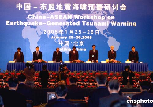 中新社北京一月二十五日電(記者孫自法)在印度洋地震海嘯發(fā)生整整一個月后的今天,中國-東盟地震海嘯預(yù)警研討會在北京飯店開幕。來自中國和東盟十國、東盟秘書處與聯(lián)合國相關(guān)機(jī)構(gòu)的專家和官員,以及印度、斯里蘭卡、美國、日本、韓國等國的觀察員代表近百人與會。
