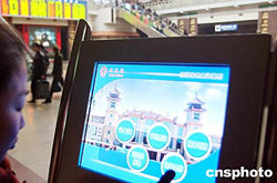 一月二十六日,準(zhǔn)備返鄉(xiāng)的乘客正在北京站電子查詢機(jī)前查詢新增臨時(shí)客車情況。十臺(tái)春運(yùn)乘車查詢機(jī)二十五日在北京站投入使用,乘客可以自行查詢往返車次、新增臨時(shí)客車、車票情況等十多項(xiàng)內(nèi)容。作者:韓藝冰