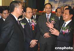 澳門(mén)特首何厚鏵一月二十六日訪問(wèn)廣西,尋求加強(qiáng)合作的新途徑。二00四年,澳門(mén)在廣西投資項(xiàng)目共二百八十七個(gè),合同金額二點(diǎn)九四億美元,實(shí)際投資金額二點(diǎn)六五億美元,在投資廣西的國(guó)家和地區(qū)中,澳門(mén)的合同金額和實(shí)際投資金額均排第八位。圖為廣西自治區(qū)政府主席陸兵(右一)在向何厚鏵先生介紹情況。作者:蔣雪林