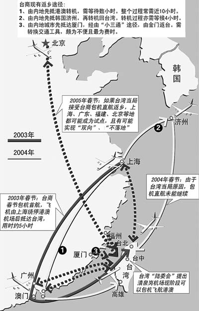 圖文資料:2005年春節(jié)臺商包機直航路線示意圖