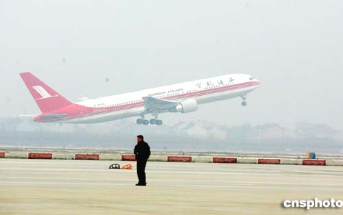 一月二十九日上午八點四十五分,上海航空股份有限公司FM八○七次航班搭載返鄉(xiāng)臺胞二百余人從上海浦東國際機場順利起飛。