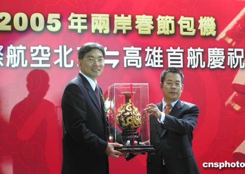 圖:兩岸民航業(yè)者為春節(jié)包機高雄首航慶賀