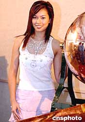 2004年度香港小姐亞軍朱慧敏小姐,日前參加香港女童軍總會的攪珠頒獎儀式,為活動造勢。