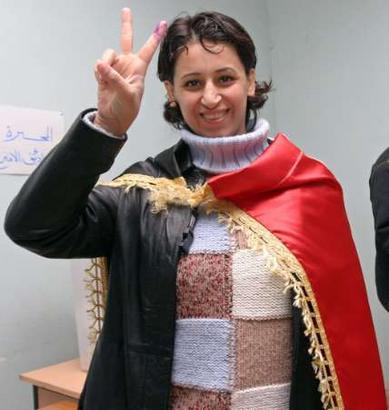 1月30日,一名伊拉克婦女在巴格達(dá)一處投票站投票后打“V”手勢,展示自己涂上顏料的手指。每位參加投票者在投票后都要在手指上涂上顏料作為標(biāo)記。
