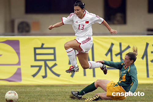 | 女足四國錦標(biāo)賽一月三十日在福建泉州繼續(xù)進(jìn)行,在中國隊(duì)與澳大利亞隊(duì)的比賽中,中國隊(duì)在下半場的四分鐘內(nèi)憑借潘麗娜、韓端和任麗萍的三粒進(jìn)球完勝澳大利亞隊(duì)。中新社記者:盛佳鵬