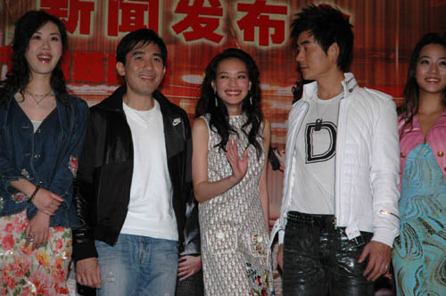 中新網(wǎng)2月2日電 據(jù)大公報報道,梁朝偉、任賢齊、舒淇及兩位韓籍女演員趙漢娜、曹秀鉉,昨日在北京出席電影《韓城攻略》的記者會,雖然當?shù)貧鉁貫榱阆氯,但舒淇仍冒著嚴寒穿上吊帶裙加披肩,與兩位打扮性感的韓籍女演員爭艷斗麗。