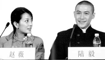 《情人結(jié)》的首映活動在昨日下午2時拉開,記者們都沖著趙薇而去,整個發(fā)布會剛開始就是趙薇和陸毅為6對新人做伴娘伴郎的“戲”,這種形式自然讓記者們“眼前一亮”。在現(xiàn)場,為了不搶新郎新娘的風頭,趙薇與陸毅以一身樸素的裝束出場。他們更帶來一瓶紅酒,為6對新人統(tǒng)統(tǒng)斟上,然后為他們切下蛋糕。在主持人李霞等的串場下,在婚禮進行曲中,新郎新娘接吻、交換信物……現(xiàn)場氣氛相當熱鬧,新人臉上也是寫滿了幸福,有新娘被感動得流淚,稱這是自己一生最難忘的最激動的事情。對于這樣一對明星伴郎伴娘記者們自然是狂拍不停,不過大家爭搶鏡頭讓現(xiàn)場一片忙亂,還險些打了起來。