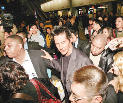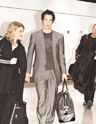 乘坐十多小時(shí)機(jī)程的基努出閘時(shí)略帶倦容,不過仍很友善的向Fans揮手,并上前合照簽名,期間記者蜂擁而上爭相拍照,場面一度混亂,更有女Fans只顧追星連手袋掉在地上也不理。問基努對今次行程有何期望,他說:“希望是一個(gè)開心愉快旅程!今次是第一次來香港!”其后他登車往下榻的灣仔君悅酒店,據(jù)知酒店方面特別安排了七架專車接送,派頭十足。