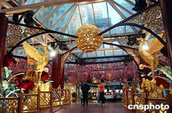 農(nóng)歷新年將至,香港太古城以鳳凰為主題,兩只15呎高的鳳凰屹立在雞冠花的花林中,商場一片花團錦簇,平添節(jié)日氣氛。作者:洪少葵