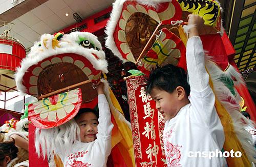 財神爺與亮麗的旗袍美女在海港城向途人派發(fā)賀年利是