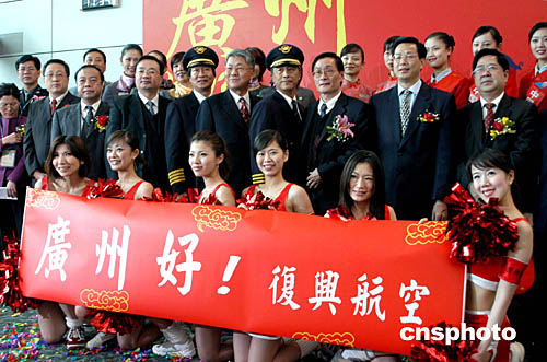 二月四日上午,臺灣復(fù)興航空公司的A321飛機在濃霧中平穩(wěn)地降落在廣州新白云機場。這是臺灣地區(qū)第一家航空公司首航臺北至廣州。