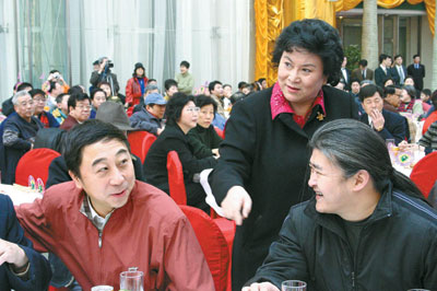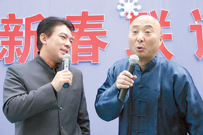 昨天,華彬大廈一層的大廳里,人聲鼎沸,笑聲不斷。在這里人們不僅見(jiàn)到劉蘭芳、馮鞏、李金斗、李文華、常寶華、孟繁貴等曲藝界的大腕們,同時(shí)也見(jiàn)到了陳佩斯、朱時(shí)茂、劉曉慶、劉歡、梁天等這些看上去原本沒(méi)有關(guān)系的演藝界明星們。聯(lián)誼會(huì)的當(dāng)家主持是中國(guó)曲藝家協(xié)會(huì)分黨組書(shū)記、相聲名家姜昆以及相聲演員孟繁貴。連主持人都是相聲演員,您說(shuō)這樣的會(huì)議能不熱鬧?上面抖著“包袱”主持會(huì)議,底下你一言我一語(yǔ)地接話茬兒,聯(lián)誼會(huì)始終洋溢著笑聲和掌聲。