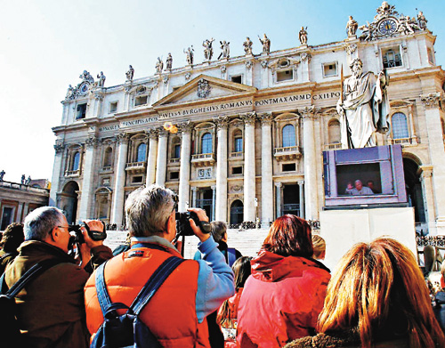 圣彼得廣場(chǎng)的朝圣者上周日聆聽(tīng)教皇祝福。(路透)