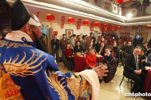 二月八日是中國傳統(tǒng)的除夕之夜,來自法國、英國等國家的六十余位外國友人在北京朝陽麥子店街道社區(qū)度過了一個極富中國傳統(tǒng)風(fēng)俗的除夕之夜,他們與社區(qū)居民一同看京戲、品嘗中國傳統(tǒng)美食、對對聯(lián)、學(xué)做中國手工水餃。作者:任海霞