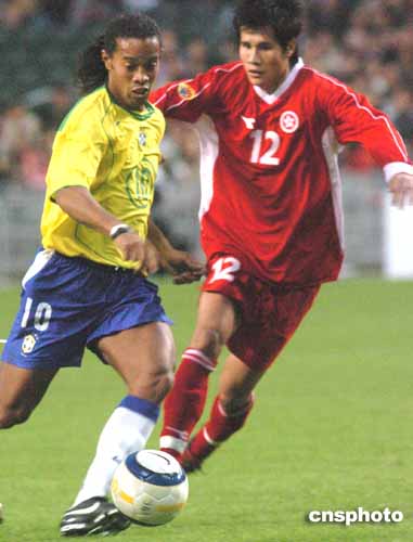 下半場,巴西隊繼續(xù)大兵壓境,攻勢一浪高過一浪。四十九分鍾,十號羅納爾迪尼奧憑藉過人技術,連過數(shù)人挑射入網(wǎng)。五十七分鐘,奧利維拉射入個人本場的第二個球。