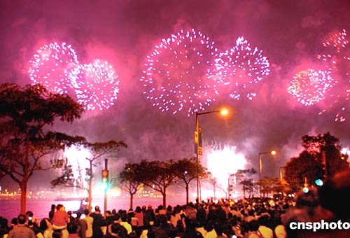 帶著經(jīng)濟(jì)好轉(zhuǎn)的喜悅,大量香港市民傍晚六時(shí)不到,紛紛舉家來到維港兩岸占據(jù)有利位置;亦有人登上觀光船,或光顧坐擁海景的餐館;在尖沙咀、半山、中區(qū)、灣仔、銅鑼灣及紅□等地處處站滿了人群。許多人今次為了選擇角度觀賞煙花,頗費(fèi)了一番工夫。