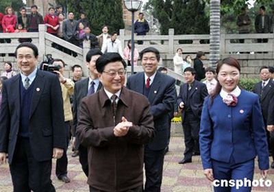二月八日至十四日,中共中央政治局常委、國務(wù)院副總理黃菊一行在福建進行考察。圖為二月九日農(nóng)歷大年初一那天,黃菊在福州船政文化主題公園羅星塔園里向市民拜年,祝大家新春愉快。作者:楊婀娜