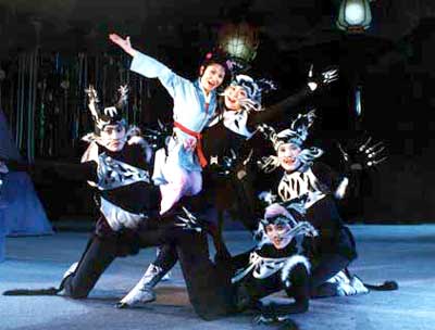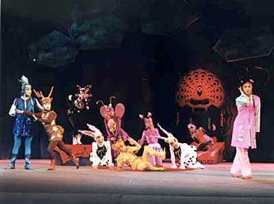 除了動物,劇中的人物也在發(fā)生著變化。重排前大蘭是一個極壞、無藥可救的人物形象,最后以死結束;創(chuàng)作人員在進行重排時做了改動——大蘭通過教育,變成了一個好人。