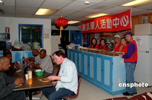 每年中國農(nóng)歷春節(jié)前后,美國首都華盛頓的一些華人志愿者都會帶上中式飯菜,到洛克維爾市的一個避難所慰問無家可歸的美國人,使這些被社會遺忘的一族感受到華人社區(qū)的溫情。這是今年春節(jié)前,當(dāng)?shù)匾恍┤A人在給無家可歸的美國人過中國新年的情形。作者:余東暉