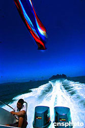 2月中旬的泰國布吉島上風平浪靜,游船劃破海面上賤起長長浪花,使寧靜的大海多了幾分壯觀。海嘯地震過后,到這里旅游的客人日益增多,當?shù)芈糜螛I(yè)正在逐步復蘇。作者:宋吉河