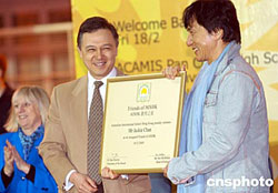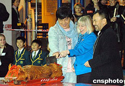 國(guó)際影星成龍2月18日在香港出席香港澳洲國(guó)際學(xué)校慶祝創(chuàng)校十周年活動(dòng),成龍獲該校頒發(fā)“AISHK教育之星。并與該校高層共同舉行切燒豬儀式。作者:鄧慶樂
