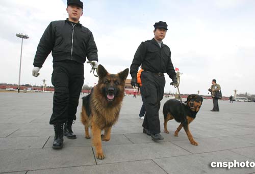 全國(guó)政協(xié)十屆三次會(huì)議三日下午在北京人民大會(huì)堂開(kāi)幕,大會(huì)開(kāi)始前警方對(duì)人民大會(huì)堂周圍場(chǎng)所進(jìn)行例行安檢。作者:湯彥俊