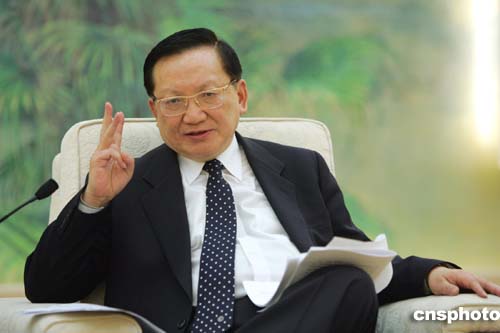 圖:唐家璇向臺灣人大代表介紹《反分裂國家法》